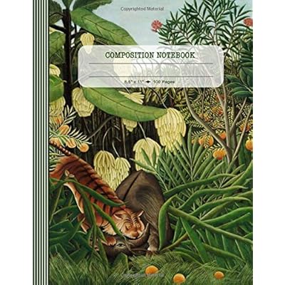 Blank College Graph Paper Composition Notebook. Book Journal / Diary5x5 Grid Graph Paper 8.5" x 11" Size, nearly DIN A4 - 100 PagesSturdy matte softcover. Awesome european artist Henri Rousseau painting "The Jungle - Tiger Attacking A Buffalo". Beautiful artsy image with tropical plants and wild animals. Green colors. Pretty notebook for tropical nature, landscape, flora and fauna art lovers.This journal makes a perfect Birthday gift idea or Christmas present.Searching STYLESYNDIKAT you find creative school, college, office supplies and creative art graphic design notebooks for kids and adults. Thank you for your visit.
